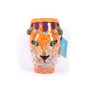 Usa il tamburo con le tue dita, i palmi, oppure con le due bacchette a forma di serpentelli, oppure usa il coperchio come cembalo.