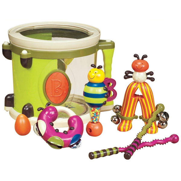 Perfetto per incoraggiare il gioco sensoriale, questo tamburo con manico contiene una serie di strumenti dai colori vivaci!!