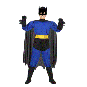 Costume in tessuto finemente rifinito, travestimento del personaggio Batman.